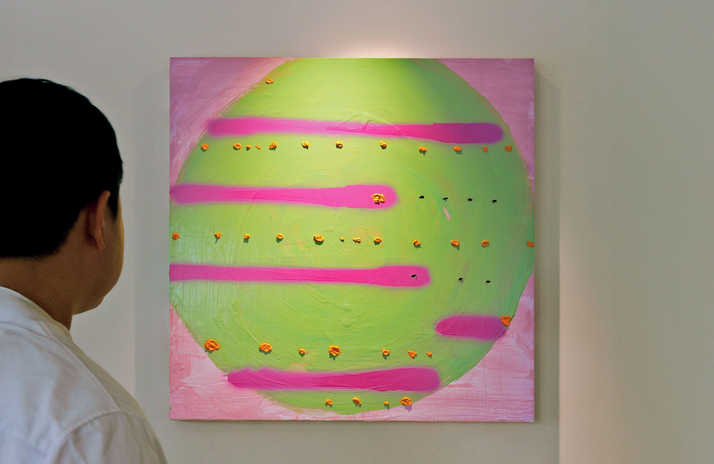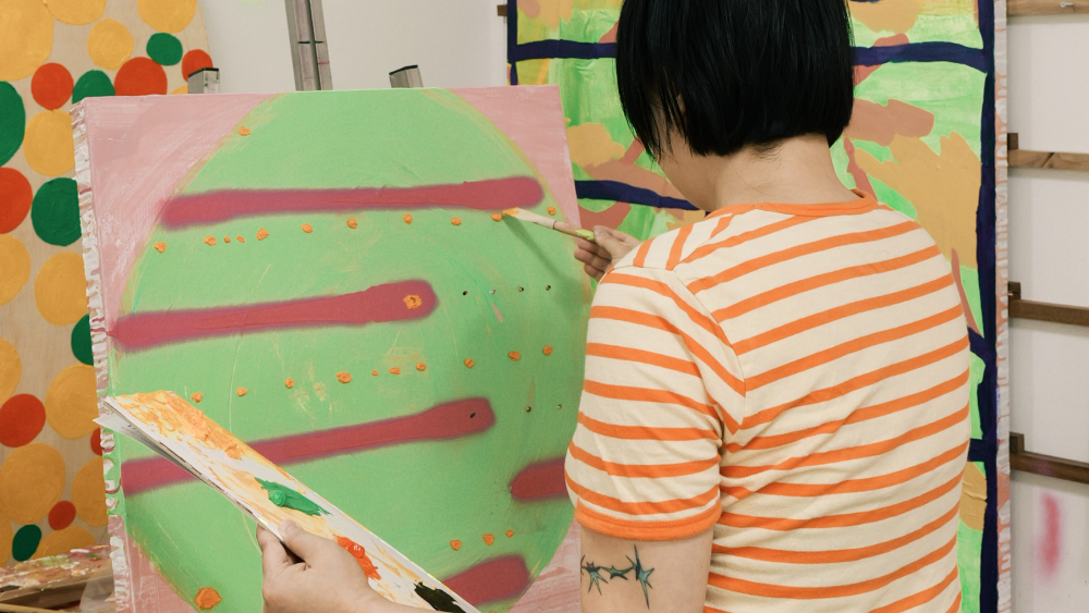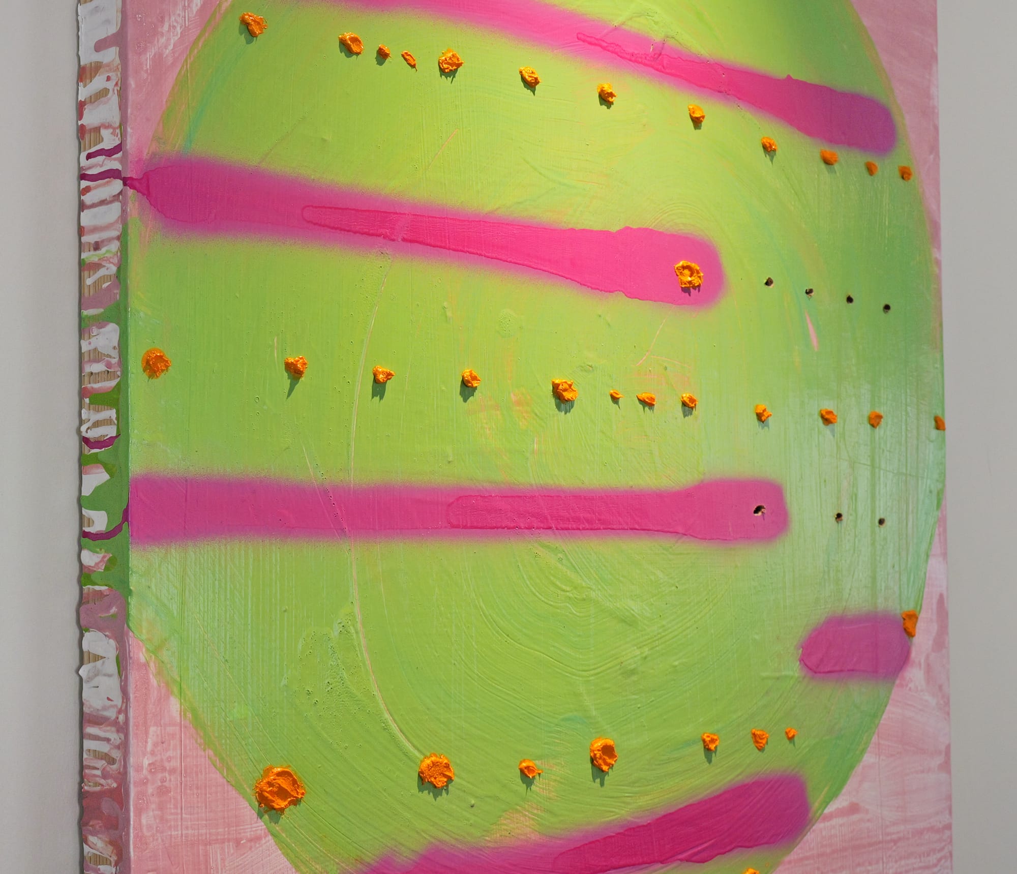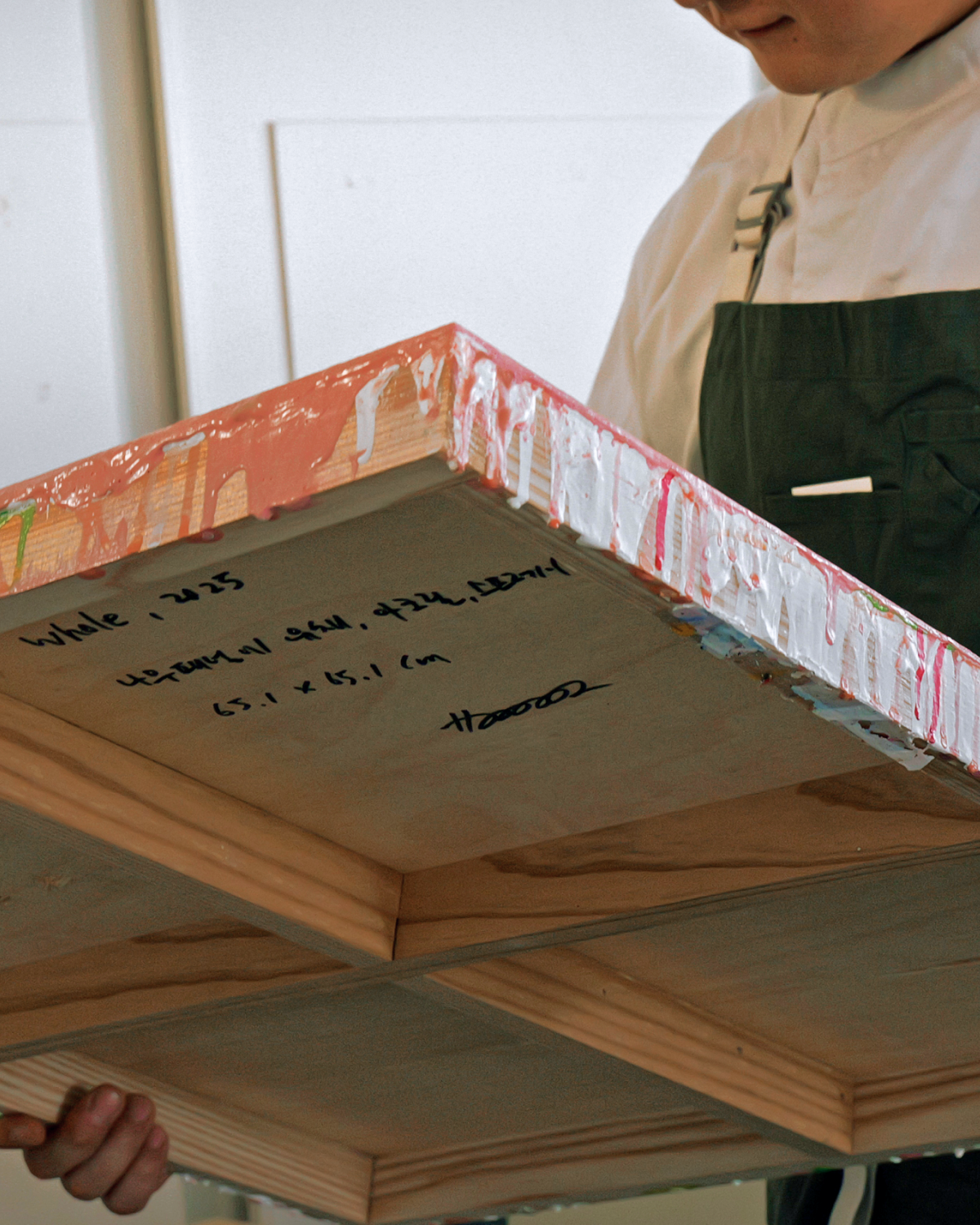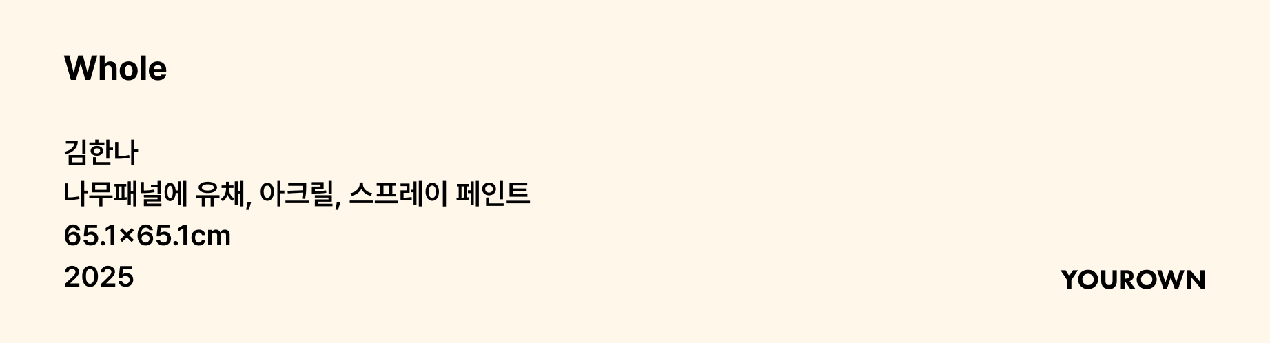 이재인 셰프의 의뢰로 완성된 작품 | <Whole> 김한나, 나무패널에 유채, 아크릴, 스프레이페인트, 65.1 x 65.1 cm, 2025