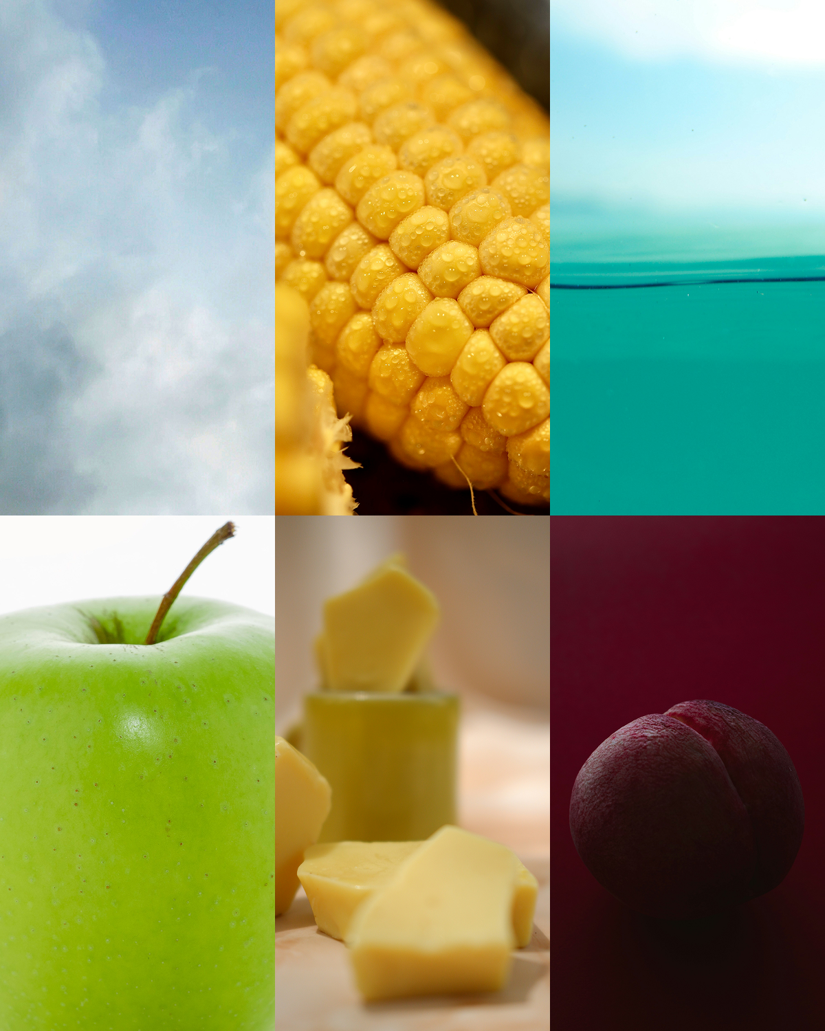 저는 이 생각을 바탕으로, 식재료가 가진 자연스러운 색이 물, 공기, 지방을 만나 자연스러운 형태(일그러진 구)로 표현되는 작품을 의뢰하였습니다.
