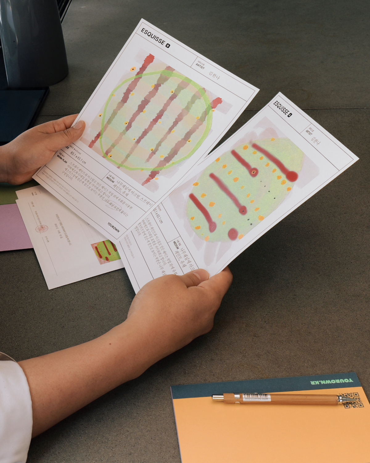 첫 번째 이유는 유로운의 추천이에요. ‘이런 키워드를 이야기했을 때, 어떤 작가님을 연결해줄까?’ 하는 기대가 있었는데, 그 기대를 정확하게 채워주셨죠. 저는 미술계에 연결된 경험이 없어서 작가님들에 대한 정보가 거의 없었거든요. 그런데 유로운에서 김한나 작가님을 추천해주셨고, 웹사이트에서 예시 작품을 처음 봤을 때 직관적으로 확 끌리는 느낌이 있었어요.