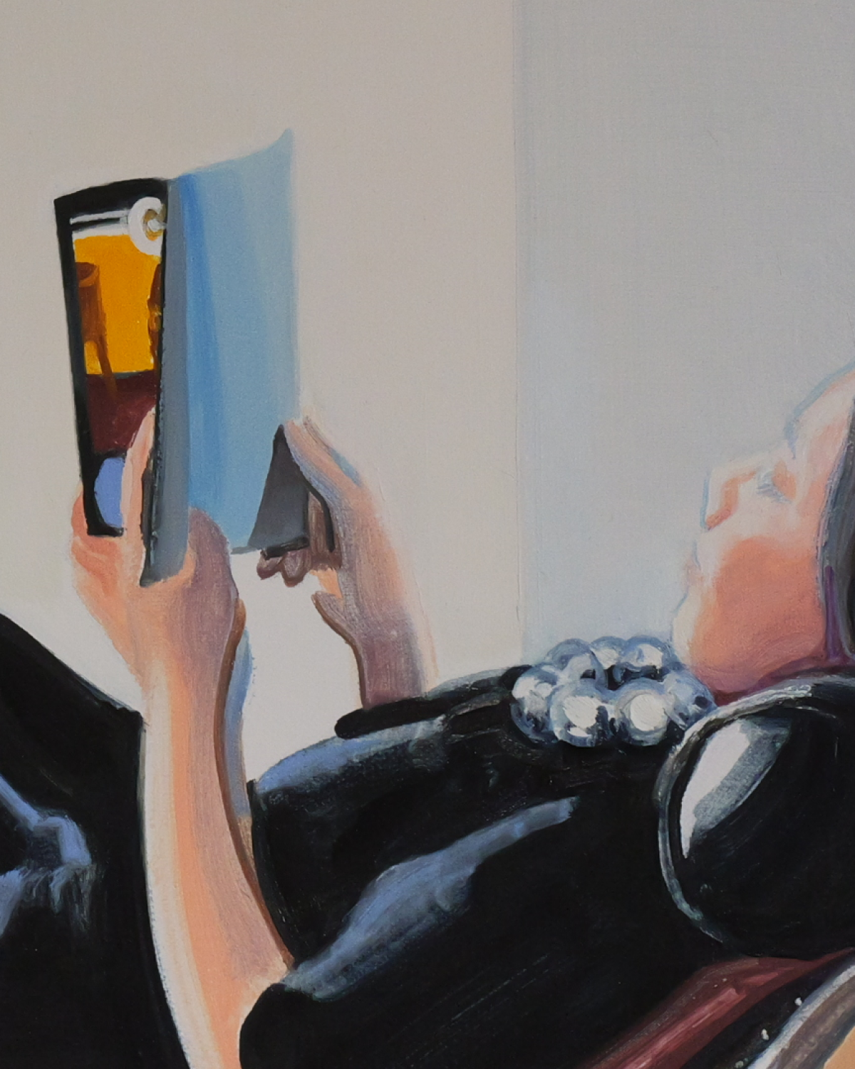 “보여주셨던 레퍼런스가 클래식하고 매우 아름다워서 잘 참고하면서, 제 그림 중에 선택해주신 <퍼포먼스>처럼 햇살이 가득한 시원하고 경쾌한 느낌을 더해보고자 했습니다. 의자와 인물이 가진 조형적 쾌를 고스란히 살리고 싶어 작은 터치로 세밀하게 물감을 올린 부분도 있고, 아름답게 쭉 뻗은 동세를 표현하기 위해 빠르고 단단한 붓질로 그려 그와 대조되는 부분도 있습니다. 인물과 가구에 집중하기 위해 배경은 다소 생략되고 변형되었는데요, 방 한가득 쏟아지던 햇살과 클래식 FM의 음악소리가 잘 담기길 바라며 여백의 색과 명암을 섬세히 조정했습니다. 덕분에 의미있는 시도와 즐거운 시간을 경험할 수 있었습니다.”