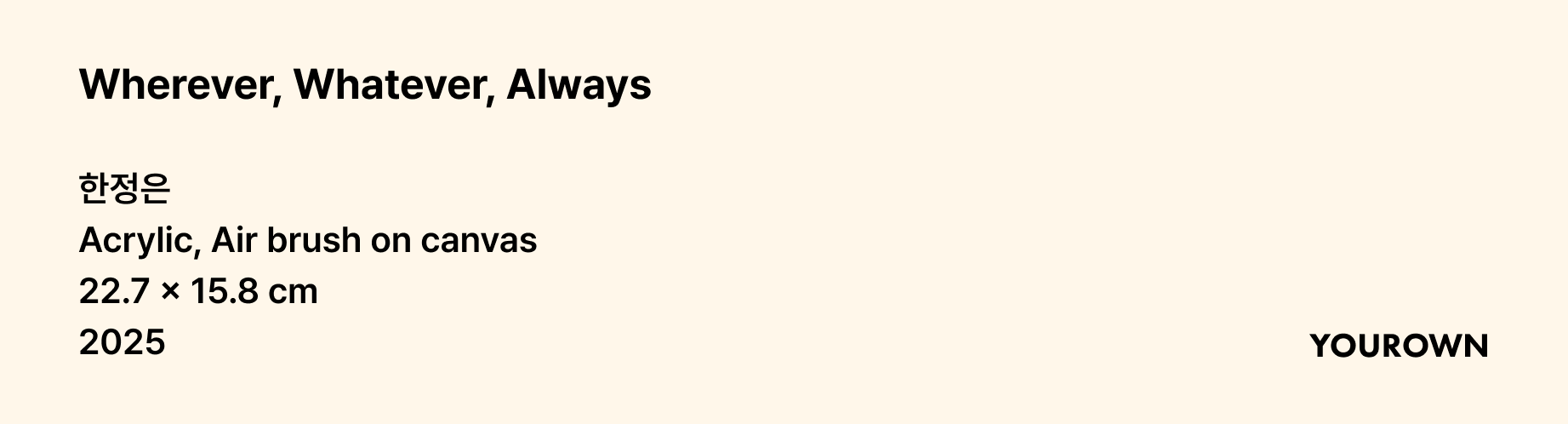 사람의 수만큼 관계의 모습이 다르고, 사랑의 감정 역시 저마다 다릅니다. 윤진님만의 진심은 작가의 해석을 통해 세상에 하나뿐인 그림으로 남았습니다. 윤진님만의 사랑 이야기가 담긴 작품 <Wherever, Whatever, Always>, 지금 함께 만나보세요.