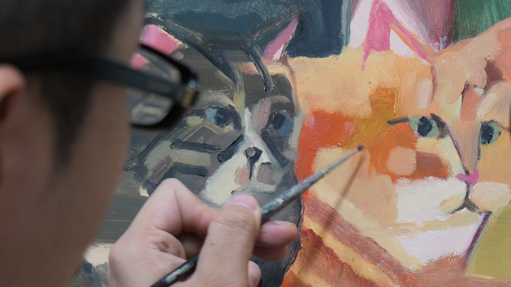 “13년간 키우던 고양이가 하늘나라로 떠난 뒤 비로소 마음 편히 고양이를 그릴 수 있었습니다. 그 당시엔 고양이와 감정적으로 매우 가까운 상태에서 고양이를 그리기 싫다고 생각했습니다. 그 행위는 대상과 거리감을 두지 못하고 감정이나 형상에 호소하거나, 그림에 사적인 이야기를 과하게 담을 것만 같았습니다. 제 경험상 지나치게 가까운 관계는 언제나 바람직하지 않았으며, 그것은 제가 회화에서 추구하는 방식은 아니었습니다.